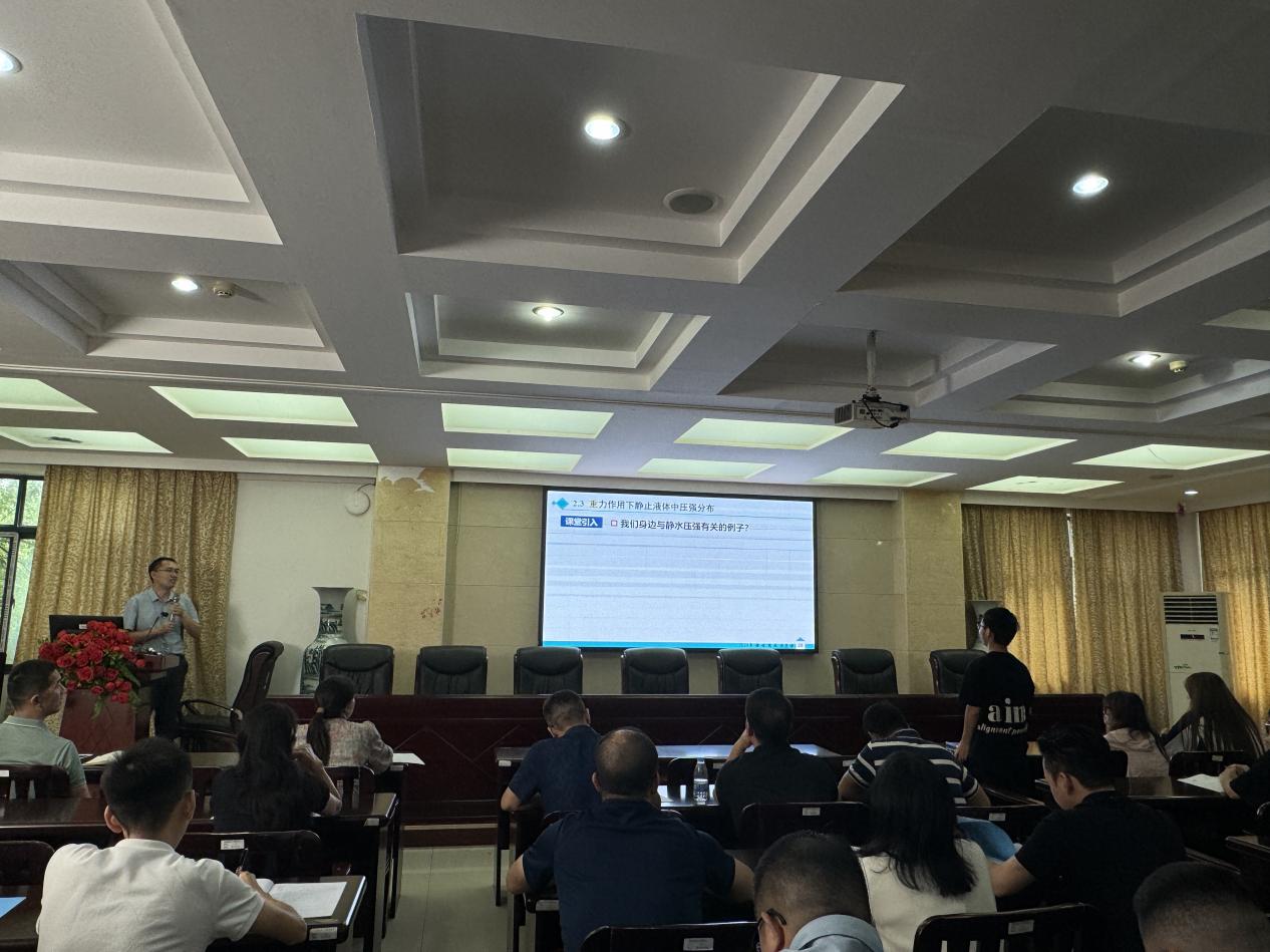 在课堂教学的思政融入环节,王闯结合水静力学中压强的相关知识,并且以生活实际为切入点,讲述了重力作用下静止液体中压强的分布情况,让学生们充分理解了水静力学的基本方程、压强度量、压强分布,掌握了静水压强的计算与运用,拓展了学生的思维。