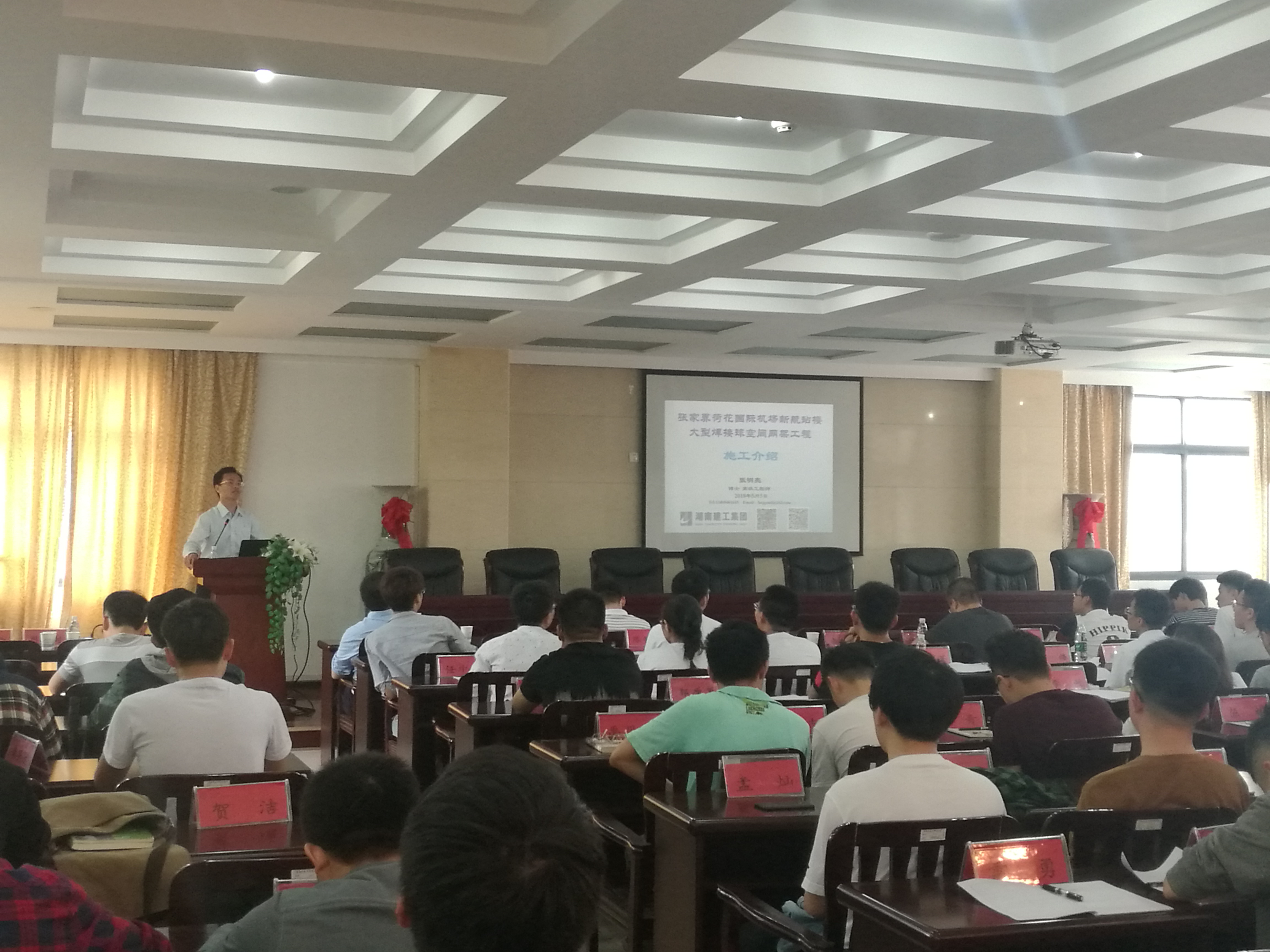 5月5日上午10点,湖南建工集团总公司技术研发部部长、湖南省建筑施工技术研究所所长、法人代表张明亮博士应邀来tapplay,在土木楼201为建筑工程系师生作“张家界荷花国际机场新航站楼大型焊接球空间网架工程施工介绍”的毕业实习专题报告。tapplay汪建群副院长、建筑工程系教师以及14级土木工程专业(建工方向)全体学生出席了报告会,报告由建筑工程系主任黄海林副教授主持。