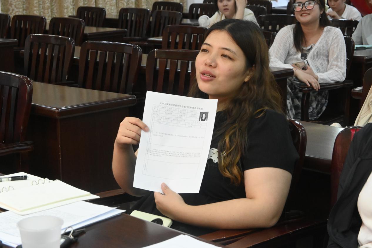 6月19日晚,学院第二十二届学团委生会部长竞选在土木楼201圆满举行,21位来自不同部门的优秀学生干部参与竞选。团委学生会各部门分管老师及主席团成员对候选人们进行面试。