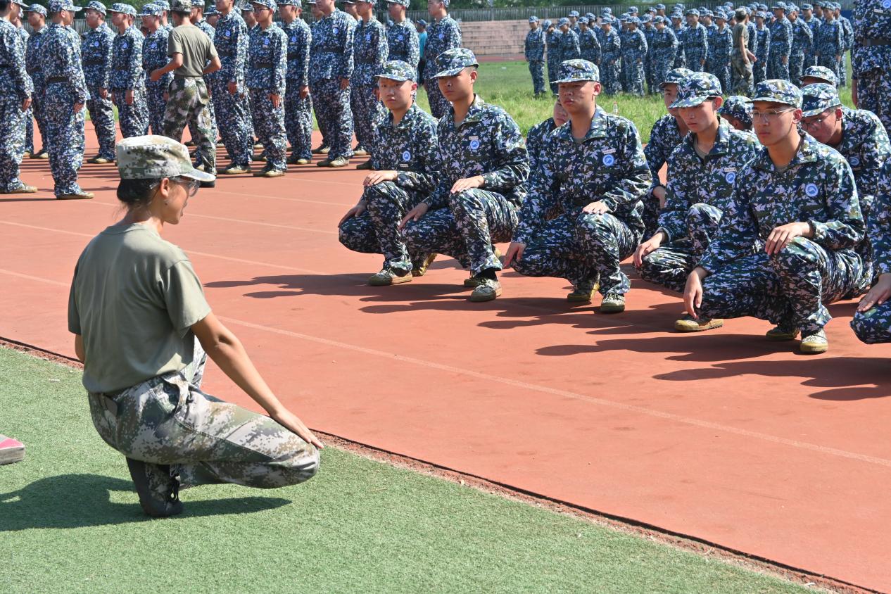 教官在训练新生蹲姿