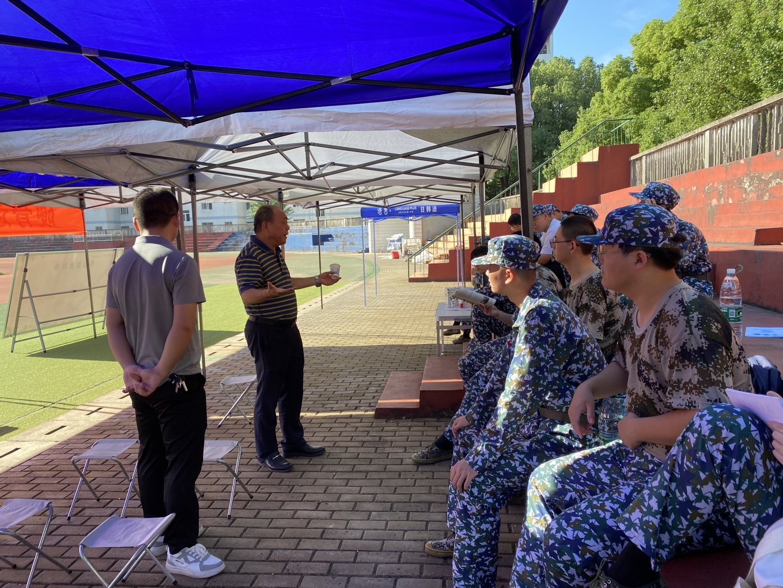 在烈日的炙烤下,一些新生出现了身体不适的情况,教官和值班学生干部及时将他们安排在阴凉处调整休息,并为他们贴心地准备了葡萄糖水、藿香正气水、饼干等物资。院党委书记万文、党委副书记陈笑、2023级辅导员谢春平、余晓铃也来到了训练场地,了解军训情况,询问、关心因身体不适在旁进行理论学习的学生情况,并对教官做出要求,务必在保障新生安全的基础上做好训练。