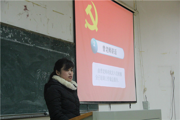 动员大会整个过程进行了四项内容。首先由主持人宣布全体起立,奏国际歌。现场安静肃穆,同学们在庄严的国际歌中感受党的精神。然后大会进行第二项,由曾老师对新一批的入党积极分子培训工作做总指导,曾老师深刻地从两个问题即“为什么”“怎么办”剖析了这次积极分子培训工作,并给出了三条原因。曾老师还引用了一句很经典的“世界上所有的失败都来源于一句话:半途而废”来激励同学们坚持党课的学习,不抛弃不放弃。大会内容的第三项是由此次入党积极分子班长代表全体积极分子发言。最后由培训的负责人讲话,对此次培训工作的展开及要求作进一步的详细部署,并提出了此次培训的目标及要求,让同学们更加严肃地对待这次培训。