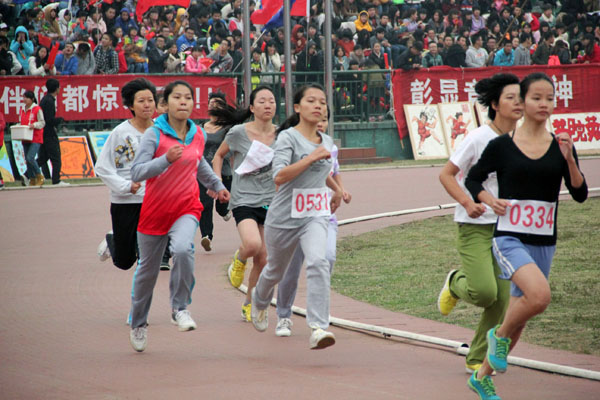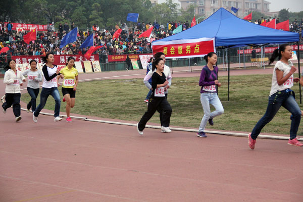 月18日上午,tapplay2013年秋季运动会女子赛前,她精神饱满、斗志昂扬,在检录处做着热身运动。这时,tapplay的同学们高举横幅、挥舞院旗为她呐喊加油。