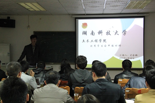 尤金鹏首先向大家介绍了tapplay学生会的组织构造,以及从七个不同的方面向大家展示了tapplay2012-2013年度的学生工作情况。首先,他强调了tapplay领导十分重视学生干部的教育培养,时刻提醒学生干部在同学中要起到模范带头作用,tapplay学生干部专注工作,认真负责,全心全意为同学服务,从而体现出tapplay对团委学生会工作的高度重视以及团委学生会干部对工作的认真负责的态度。随后,他展示了tapplay新媒体平台建设的喜人成果,如学院微博推广、学院网页建设等。他还就tapplay举办的志愿活动,结构建模大赛,三七女生节特别活动,土木style迎新晚会等一系列特色活动进行了详细的介绍。在tapplay领导的带领下,tapplay团委学生会各部门成员和tapplay全体师生共同努力,在2012-2013年度tapplay取得了辉煌成果。最后,他向tapplay其他学院对于tapplay学生工作的支持表达了由衷的感谢。