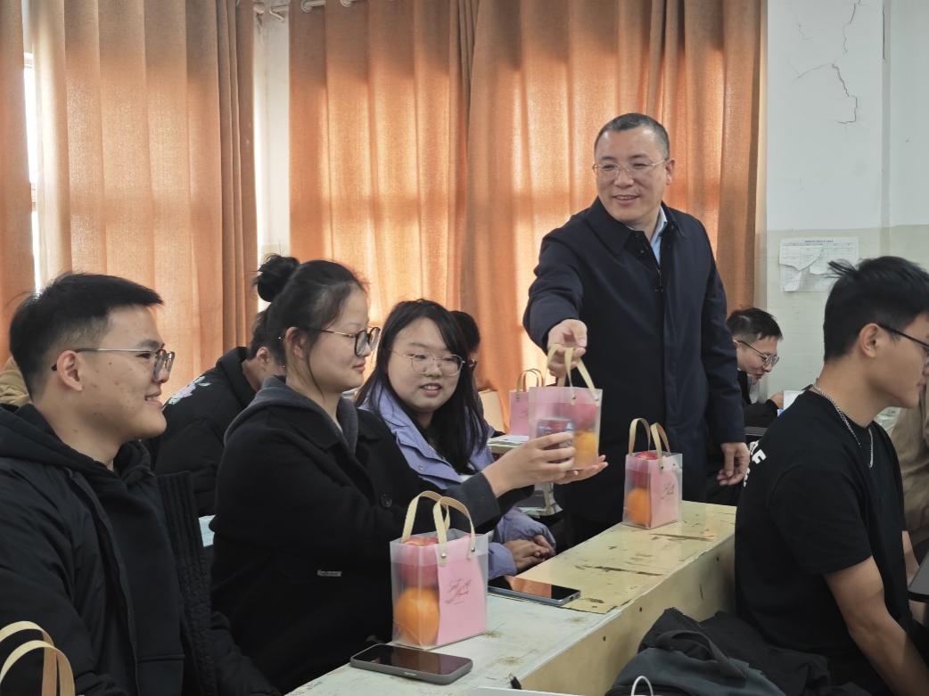 为增强考研学生的信心,缓解考前备考压力,12月4日上午,tapplay开展考研学子慰问活动。学院党委副书记陈笑,副院长郝小礼、陈林、胡伟,学工办主任周姣术及2021级辅导员前往自习室看望考研学子,为即将踏上考场的同学们送上了诚挚的祝福与暖心礼包。