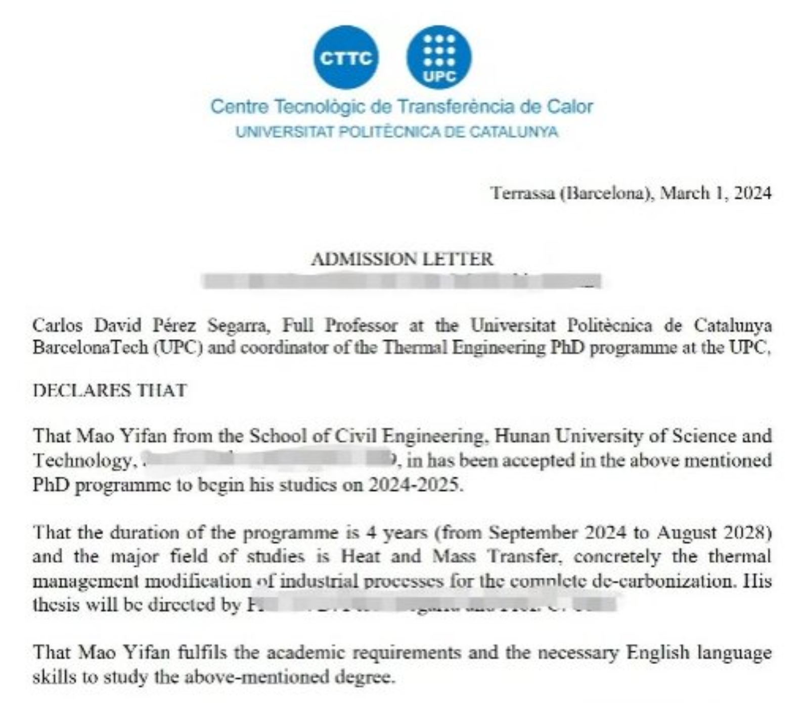 路途虽远,行者必至;困难虽多,勇者必胜。从大一初入实验室,到研二发表论文,6年的时间,他找到并坚定自己的热忱与方向。在硕士即将毕业的十字路口,他毅然选择了攻读博士,在长达一年的博士申请中,拿到了西班牙泰罗尼亚理工大学的博士offer。
