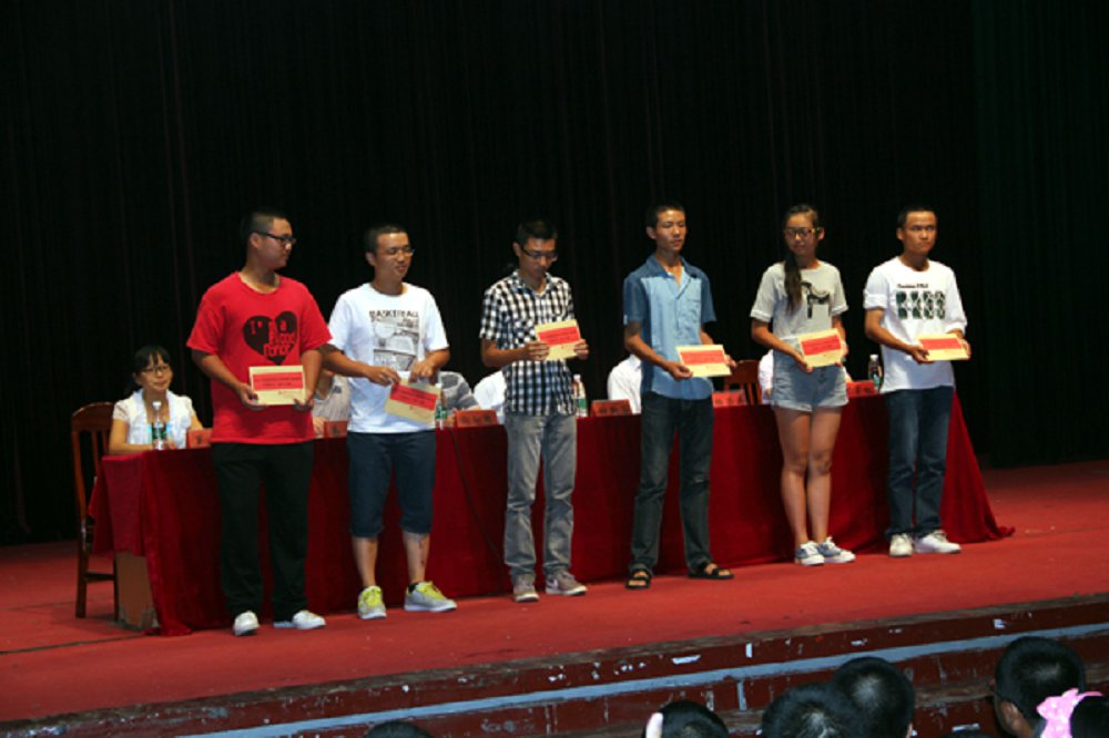 首先,院长钟新谷对此次新生军训作出了全面总结并希望新生能尽快适应大学的学习和生活。随后副院长谢献忠宣布了“2013年tapplay优质生源奖”名单,并由各位老师为获奖者颁奖,谢献忠鼓励学生要努力学习,争取人人都能拿到奖学金。接下来,易贵元、罗小红和罗芽松分别针对学生的校纪校规、学习考勤制度、考试学分、两证以及就业展开说明,让同学们对今后的学习、生活和努力方向都有了更清晰的认识。