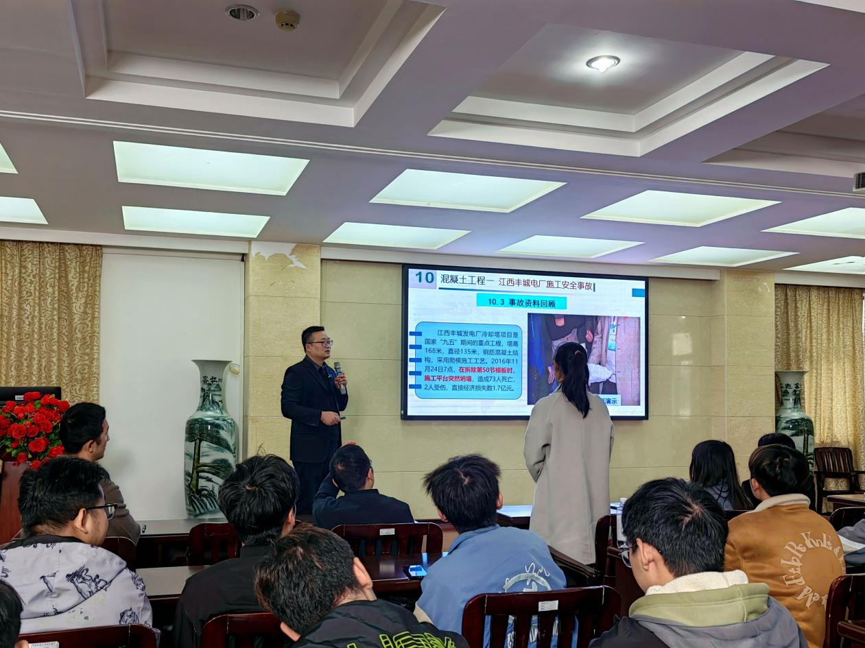 教学演示环节,赵老师对江西丰城电厂的施工事故进行分析讲解,并在教学演示中逐一展示了教学分析、教学设计、教学效果三个方面,引导学生开展了线上预习、线下小组讨论、线上问答,真正做到了课程思政“如盐在水”,专业知识与思政元素相辅相成。