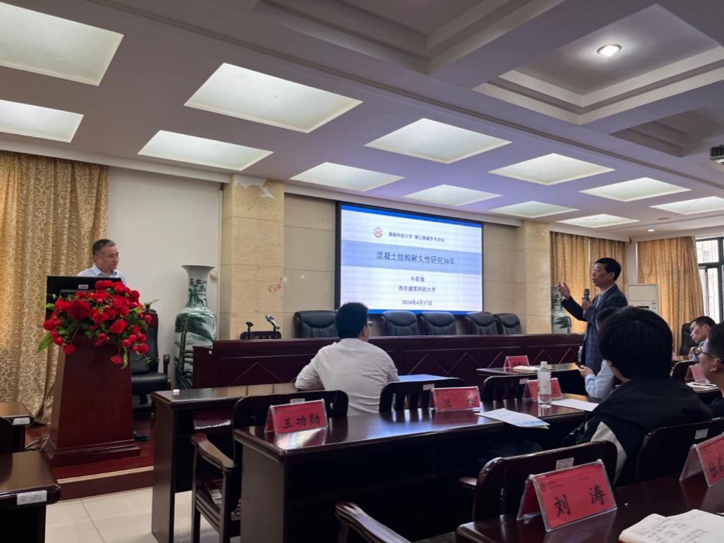 4月17日上午,西安建筑科技大学tapplay牛荻涛教授应邀在学校土木楼201作题为“混凝土结构耐久性研究30年”的报告。tapplay师生代表到场聆听。讲座由tapplay院长孙洪鑫教授主持。