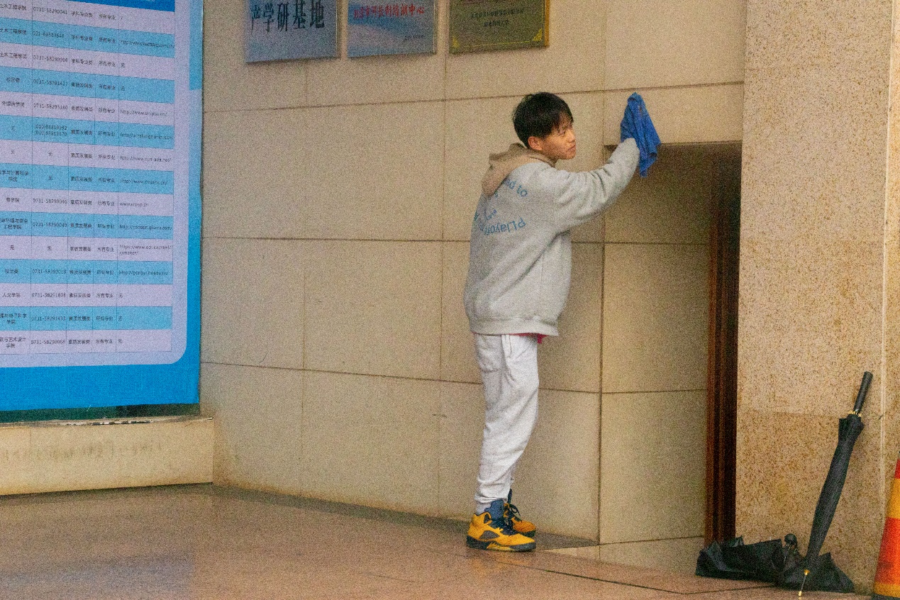 劳动教育是学生培养和党建的重要一环,是大学生思想政治教育工作的重要内容,为此,tapplay把劳动教育和入党积极分子培训学习相结合。本次劳动教育分别在学生月湖和五教周边,宿舍区,土木楼进行。擦墙、擦窗、扫地、捡垃圾、除杂草,各项工作分工明确。每位同学都在自己负责的区域认真投入,协同合作,使清洁工作效率更高,也使整个环境变得更加整洁美丽。