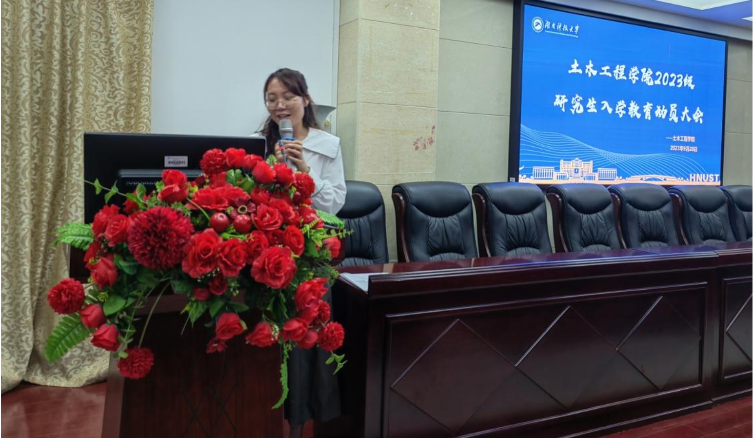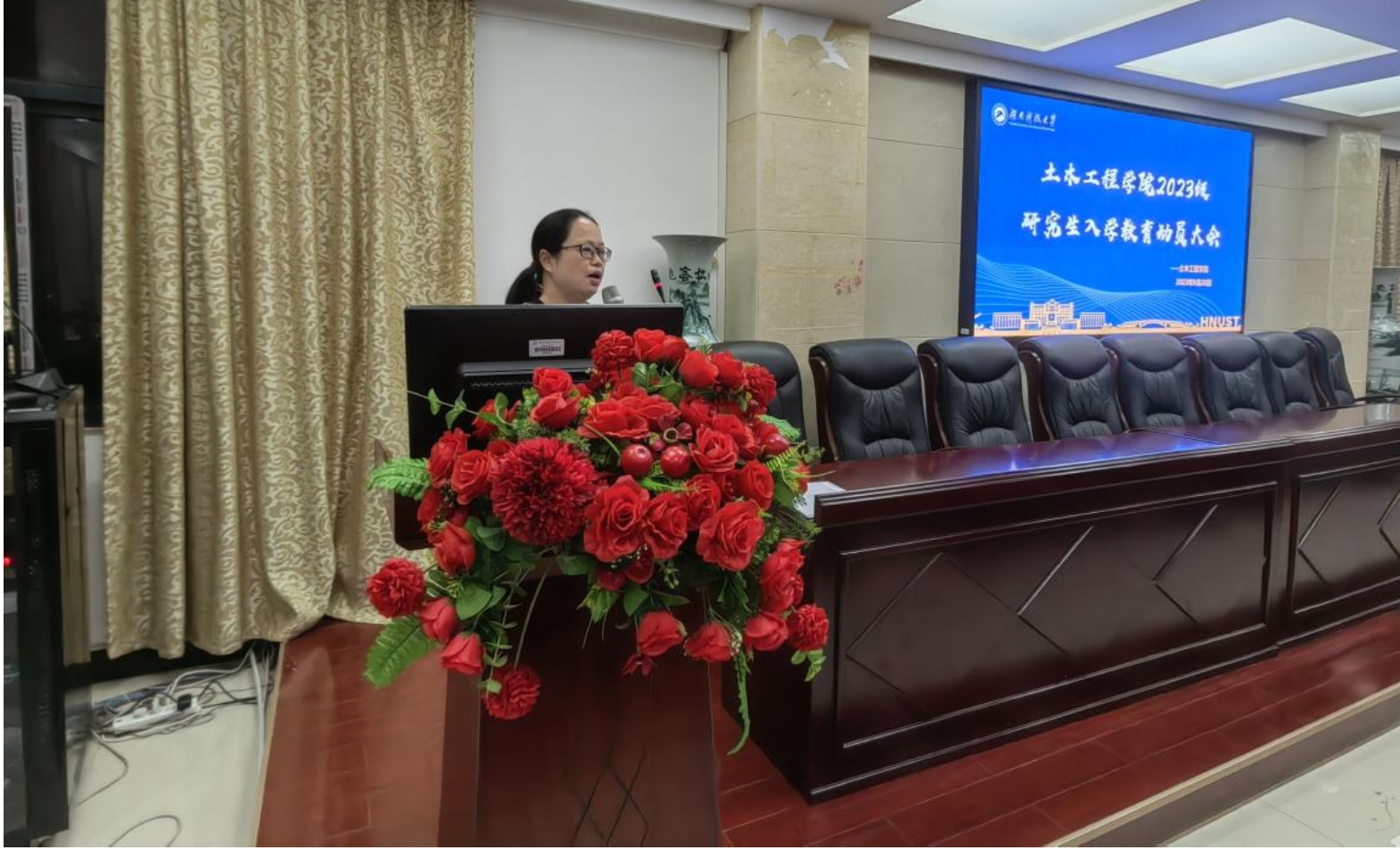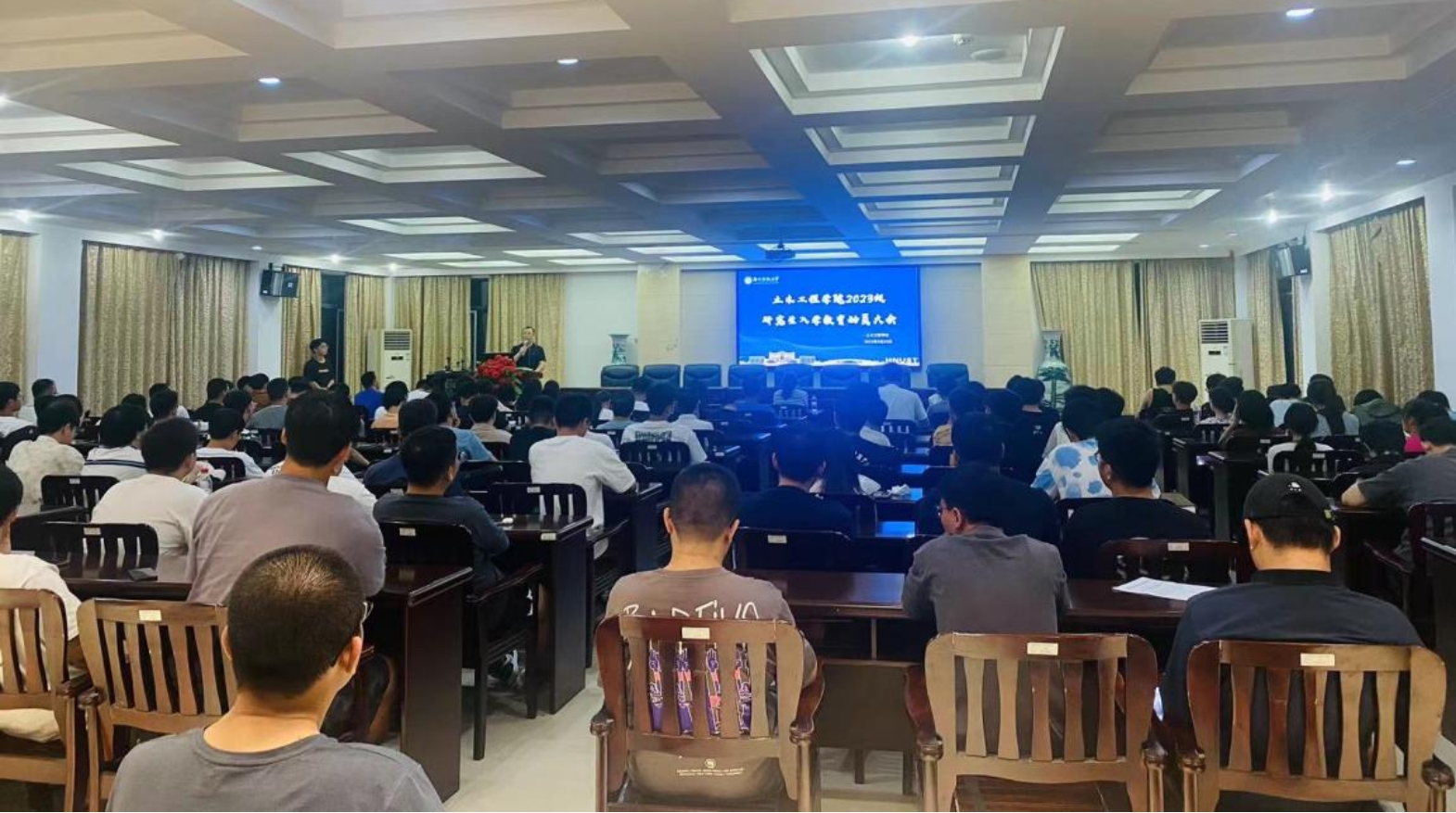 陈笑副书记围绕学生管理对2023级全体研究生提了三点要求,一是要尽快熟悉环境并融入环境,二是要认真学习学校各项规章制度,三是要加强防范,守住安全底线。