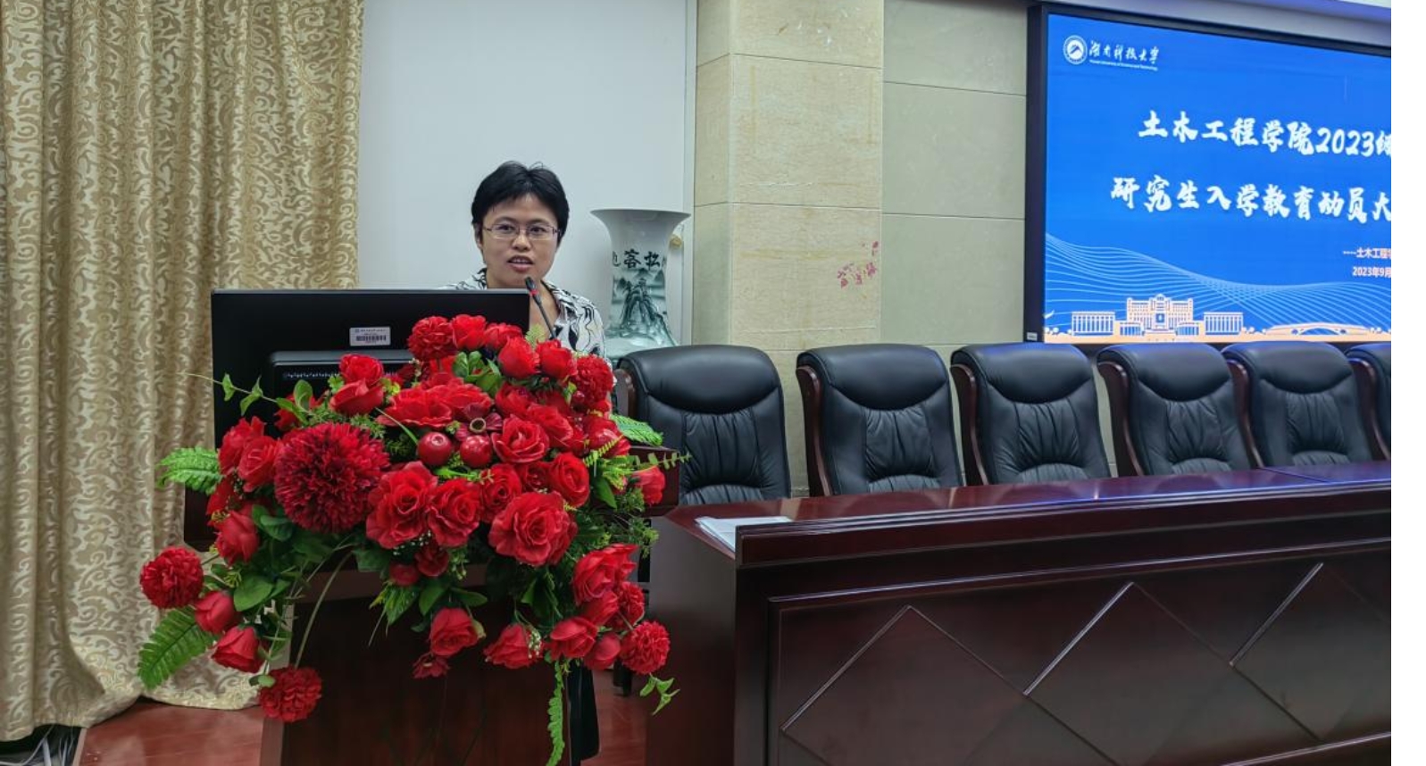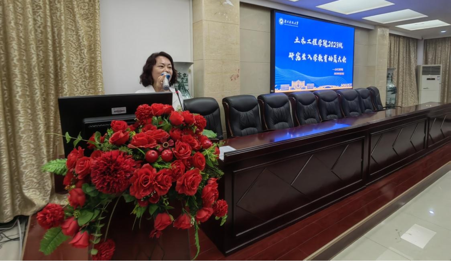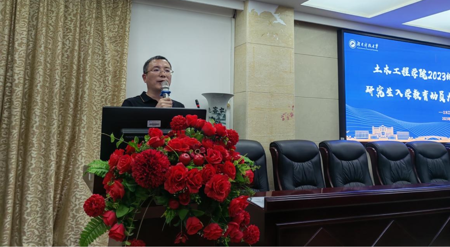 陈笑副书记围绕学生管理对2023级全体研究生提了三点要求,一是要尽快熟悉环境并融入环境,二是要认真学习学校各项规章制度,三是要加强防范,守住安全底线。
