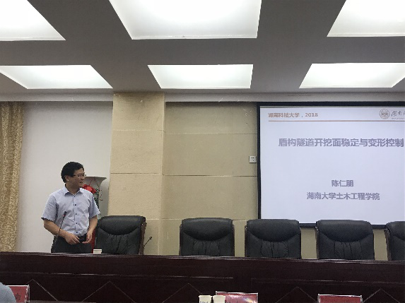2018年6月15日下午14:30,湖南大学tapplay院长陈仁朋教授应邀来tapplay,在土木楼201为全院师生作“盾构隧道开挖面稳定与变形控制”的专题报告。tapplay党委书记陈秋南主持本场讲座,相关专业师生到场聆听讲座。