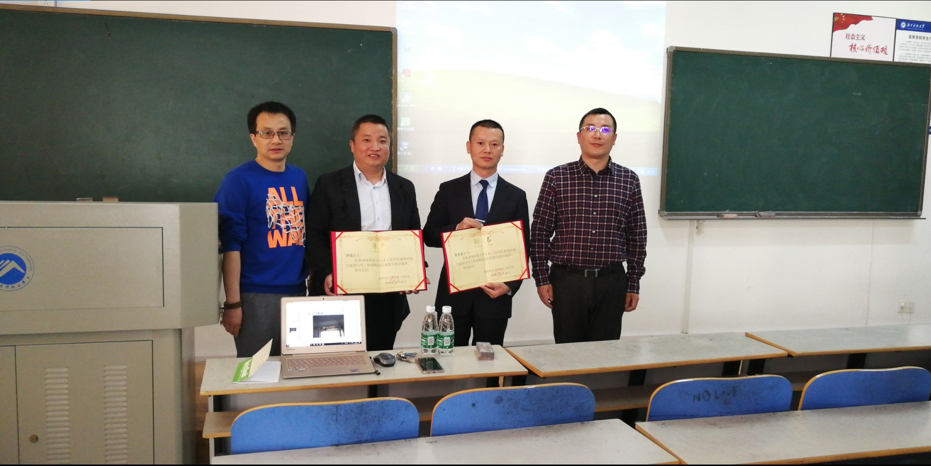 建环专业系主任李永存博士总结了2014级同学毕业实习的情况,对毕业设计提出了相关要求,然后简要介绍MDV大赛的情况,希望同学们踊跃参赛,介绍了学校积极要求设计院专家和企业专业人士担任毕业设计和部分专业课程实践教学指导老师的教学计划。tapplay副院长郝小礼教授和李永存主任一起为本次讲座的两位主讲人颁发了实践教学指导老师证书。